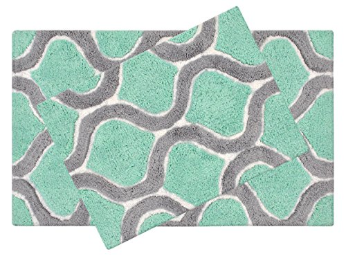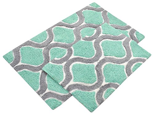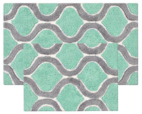 Set of 2 Bath Rugs 21 x 34 / 17 x 24 Inches prepared with Eco-friendly colors using sustainable AZO free dyes and Anti Skid Latex Backing.