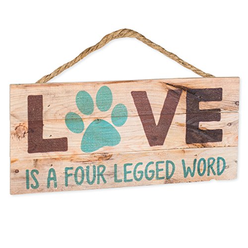 Love is a Four Legged Word Pet Paw 5 x 10 Wood Plank Design Hanging Sign