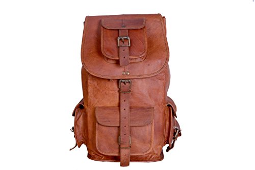 -. Feature : Imported Unisex Leather Backpack / Rucksack / Genuine leather bag made from goat leather / 20x10.5x7.5 (height , breadth) , Four external pockets to organise stuff and One big main compartment. / Adjustable wide back straps, Heavy Duty Canvas Lining / Suitable for Mountaineer,outdoor sports,hiking,traveling,camping,business trip, school backpack