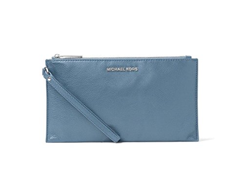 -. Title : Michael Kors Pebbled Leather Bedford Lg Zip Clutch Wristlet in Denim