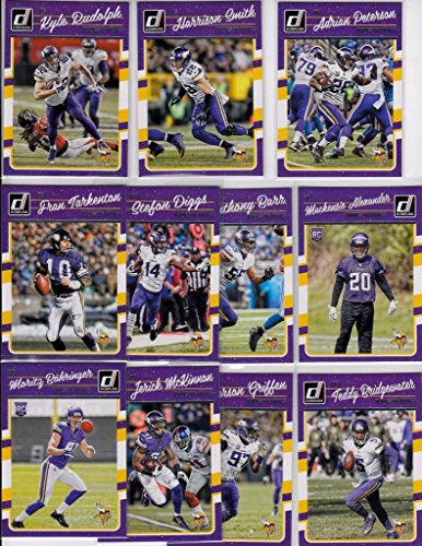 - Minnesota Vikings 2016 Donruss NFL Football factory sealed 12 card team set including Fran Tarkenton, Teddy Bridgewater, Adrian Peterson, Jerick McKinnon, Stefon Diggs, Kyle Rudolph, Anthony Barr, Everson Griffen and Harrison Smith plus rookie cards of Mackensie Alexander, Moritz Bohringer and Laquon Treadwell short printed Rated Rookies #383.