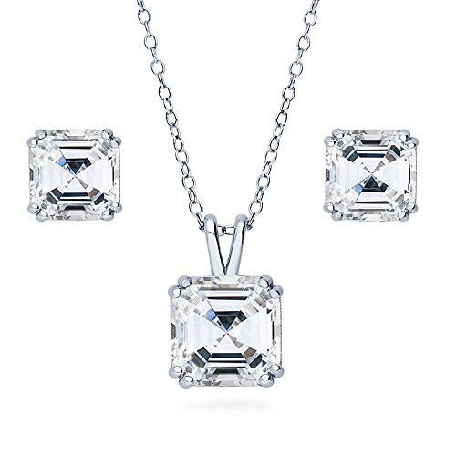 -. Title : BERRICLE Sterling Silver Asscher Cubic Zirconia CZ Solitaire Bridesmaids Necklace and Earrings Set