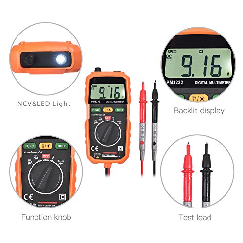 Neoteck Digital Multimeter Mini Digital Auto Range Multimeter Tester Meter DMM DC AC Current Voltmeter with Backlight LCD Probe for DIY
