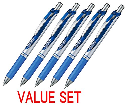Pentel EnerGel Deluxe RTX Retractable Liquid Gel Pen,0.7mm, Fine Line, Metal Tip, Blue Ink-Value set of 5 (With Our Shop Original Product Description)