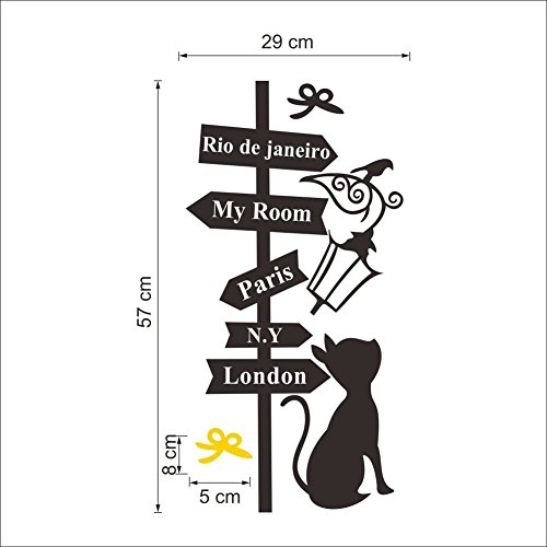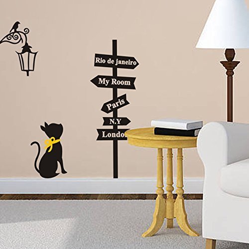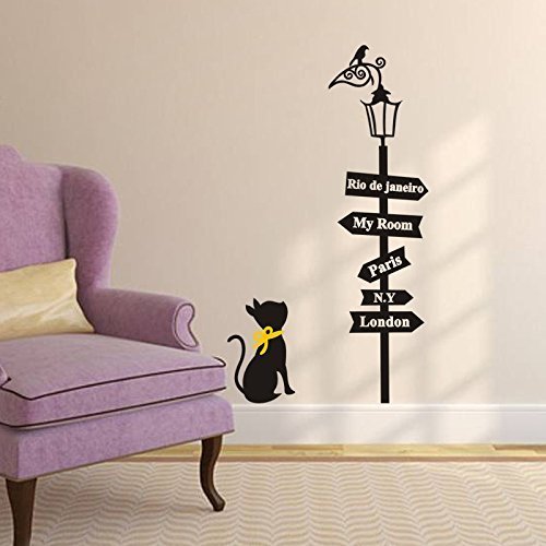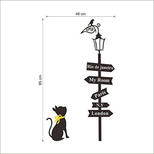 SOWRNA Animal Series Cat Looking At the Street Lamp Removable Vinyl Wall Art Decals, 33 X 19-Inch, Black & Yellow