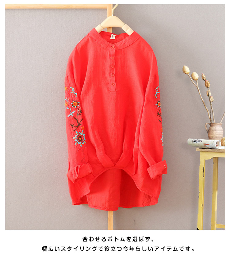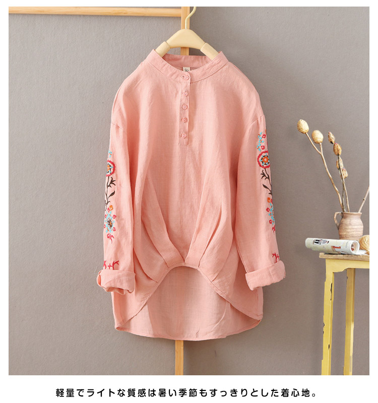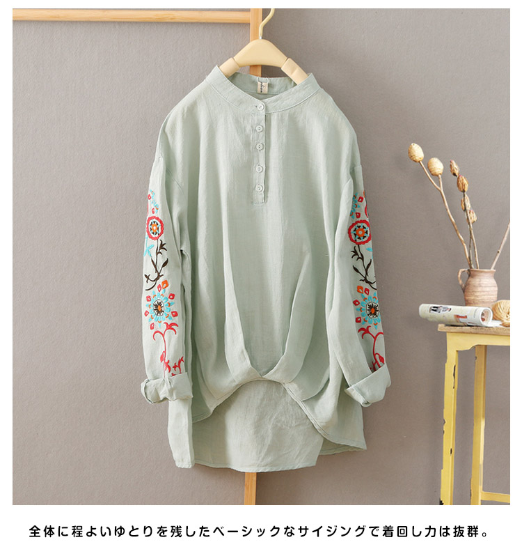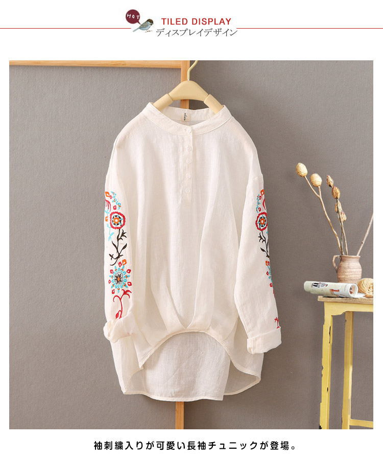 | 裾部分されたデザインが新鮮。袖刺繍入りが可愛い長袖チュニックが登場。ナチュラルでさらりとした綿麻素材が季節感も演出してくれます。軽量でライトな質感は暑い季節もすっきりとした着心地。全体に程よいゆとりを残したベーシックなサイジングで着回し力は抜群。合わせるボトムを選ばず、幅広いスタイリングで役立つ今年らしいアイテムです。 | |