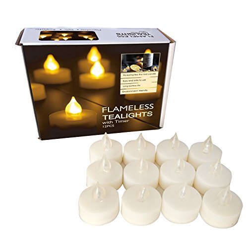 Candle Choice Set of 12 Premium Flameless Tealights with Timer, Battery-operated Candles, Long Battery Life 200+ Hours, Battery Included, Bright LED