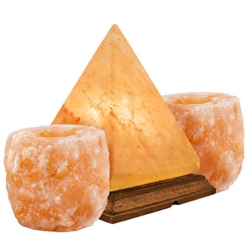 Crystal Allies Gallery: CA SLS-PYR-12cm-COMBO Natural Himalayan Pyramid Salt Lamp and 2 Piece Natural Candle Holder Combo