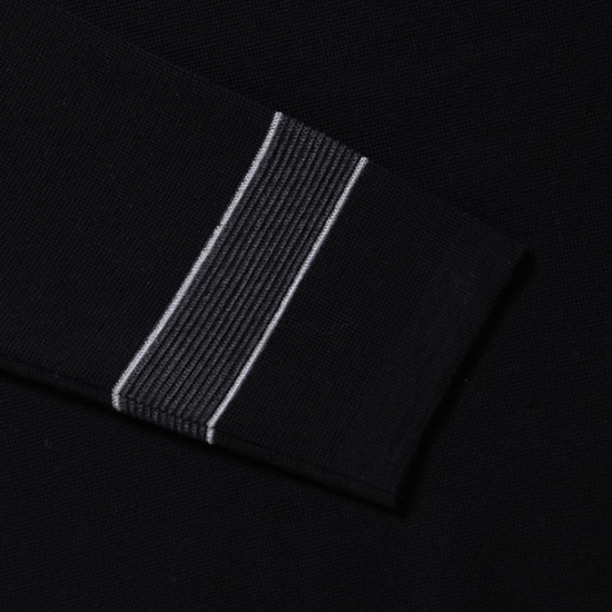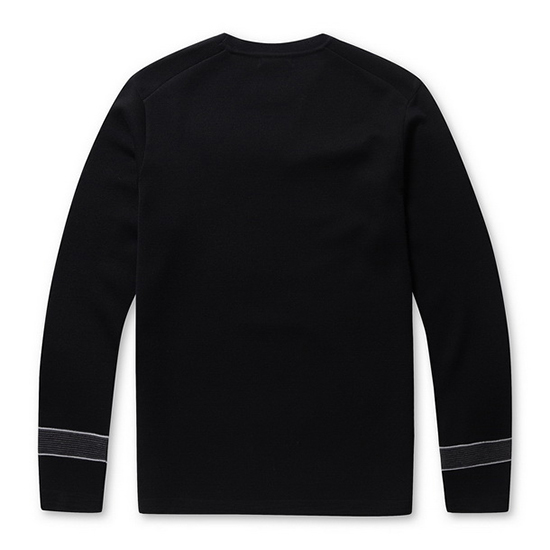 - 몸판 사이드와 소매의 라인 배색 포인트를 준 남성 니트.
