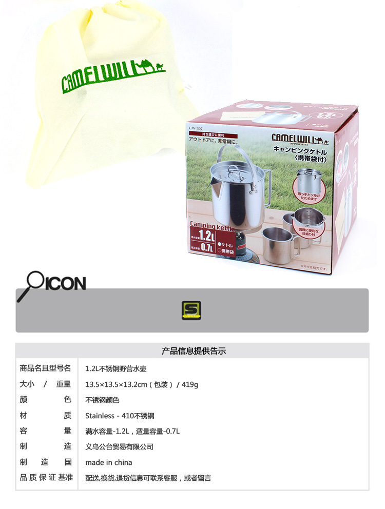 Name: 1.2L stainless steel camping kettle