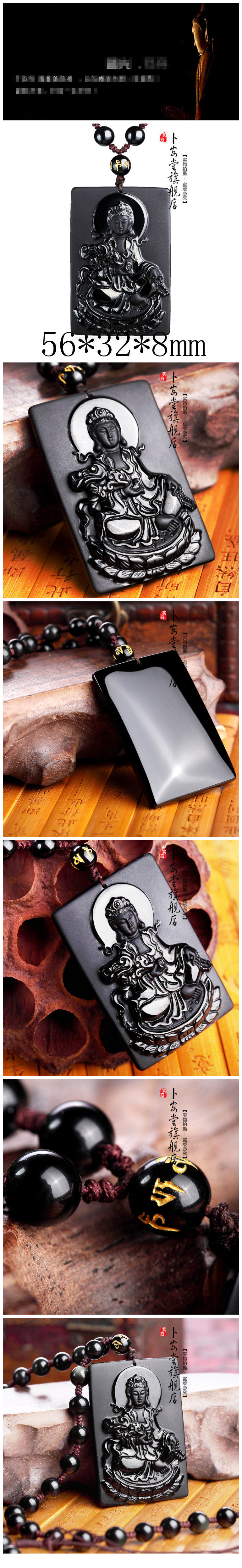 开光天然磨砂黑曜石莲花观音座鱼观音南海观音吊坠