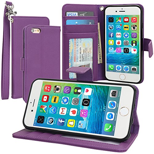Evecase iPhone 6S Plus Case, Book Style Wallet Folio Leather Case with Credit Card ID Pockets, Stand & Strap for Apple iPhone 6S Plus / 6 Plus 5.5'' Screen Smartphone - Black