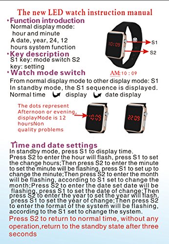 Qualitats Japanisches Quarzwerk,Gehausegrosse :41mm x 31mm / Hohe des Gehauses :11mm ; Gehausematerial : PC / Material des Armbands :PU ; Max Durchmessung :205mm / Min Durchmessung :105mm.