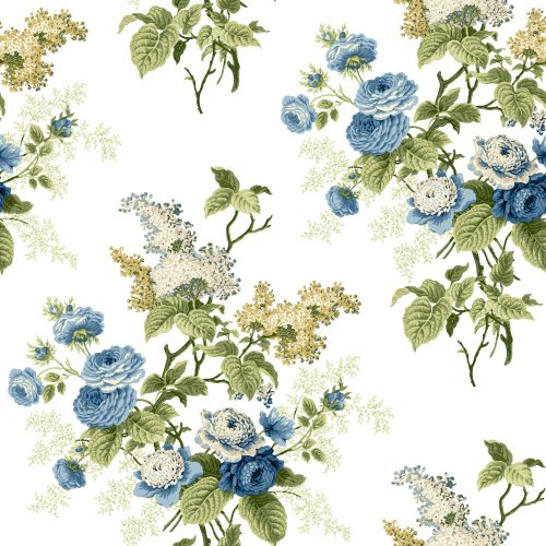 -. Title : York Wallcoverings ER8178 Waverly Cottage Emma's Garden Wallpaper, White/Blue/Yellow Green/Beige/Butterscotch