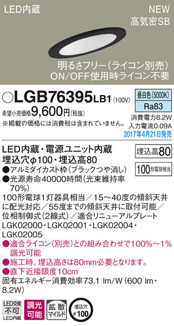 ●寸法(mm):埋込穴φ100・埋込高80