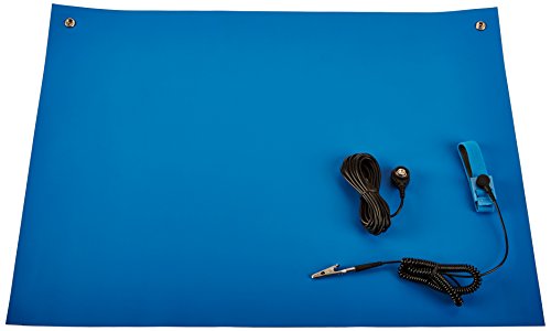 Bertech Rubber ESD Soldering Mat Kit with a Wrist Strap and Grounding Cord, 18" Wide x 24" Long, Blue