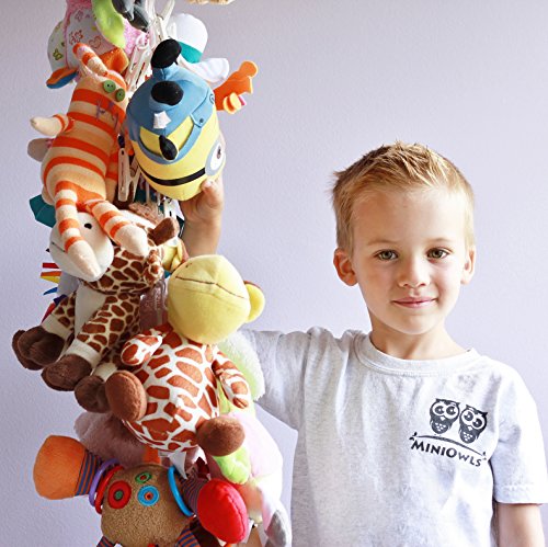 MiniOwls Multipurpose STORAGE CHAIN - White TOY ORGANIZER with 20 Clips for Home & Store Display Easy Way to Exhibit Plush Toys Art & Accessories Like Caps Hats Bags – 3% Donated to Autism Society