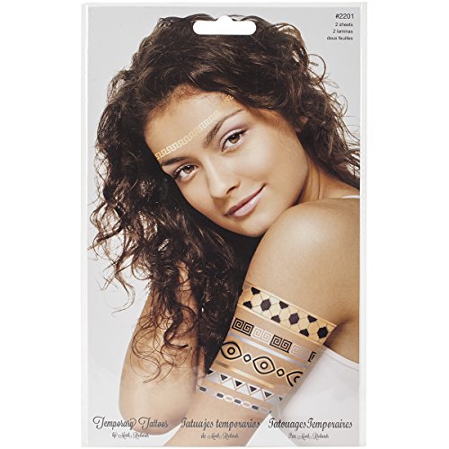 Mark Richards Temporary Tattoos Gold and Silver, 5.5" by 8", 2 Sheets Per Pack, Greek Key