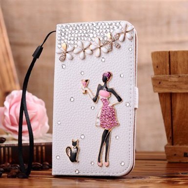 Crystal high quality PU leather case with DIY Bling diamond which design by our beautiful girls and handmade by our girls.