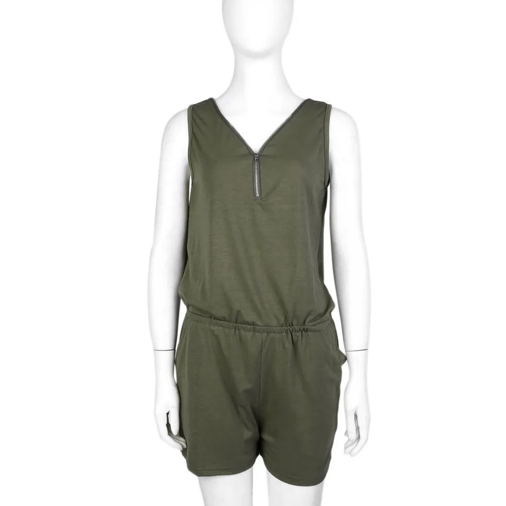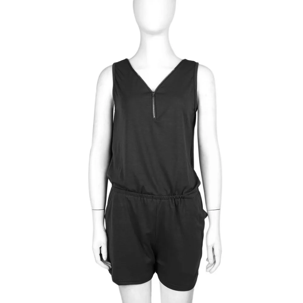 jumpsuit short: Female Front Zipper V-neck Solid Romper Short Trousers