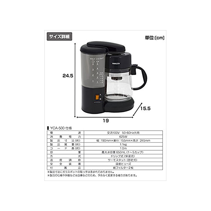 원본상품명: 山善(YAMAZEN) コヒメカ 650ml(5カップ) ブラック YCA-500(B)