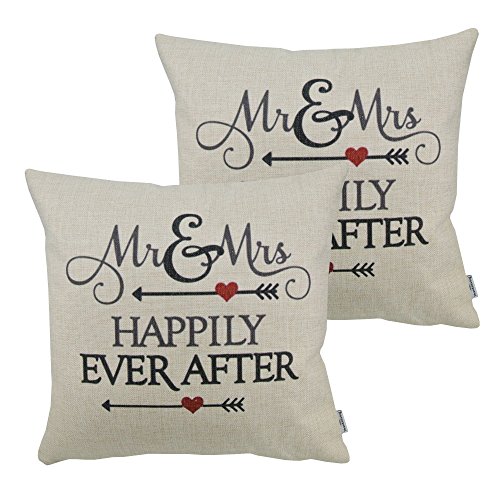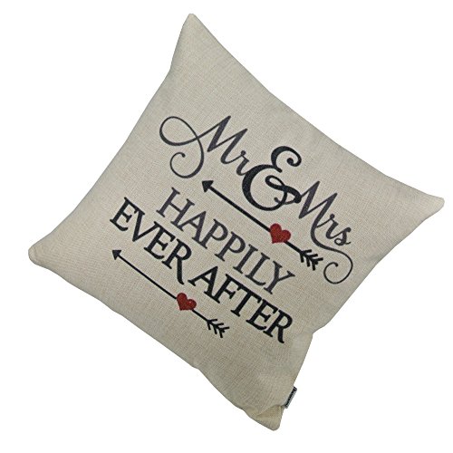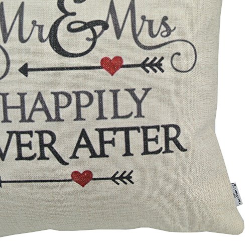 Thanksliving 2 Pcs Quotes Cotton Linen Decorative Pillowcase Cushion Cover Pillowcase 18 X 18 Inches/45 x 45 Cm,Happily Ever After