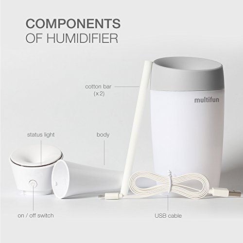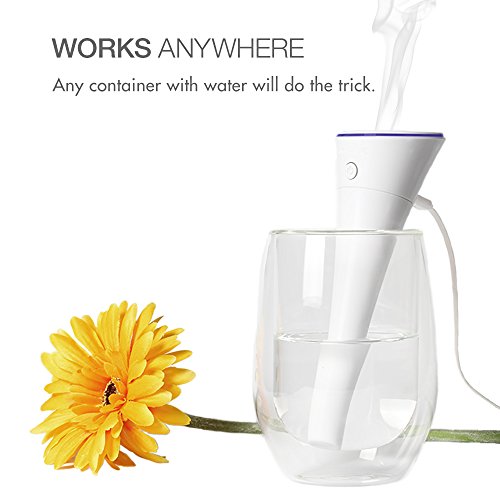 Cool mist humidifier: Ideal for Desks, single rooms, baby rooms, travel hotel room, Planes and kids rooms. Small enough to take with you wherever you go, even your car . Plugs into any USB power source including portable phone chargers, puts moisture back into dry air from over-heating or cooling.