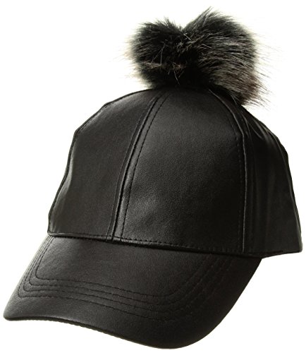 (Rampage)/Accessories/Hats/DIRECT FROM USA/RAMPAGE Women's Vegan Leather Cap with Faux Fur Pom