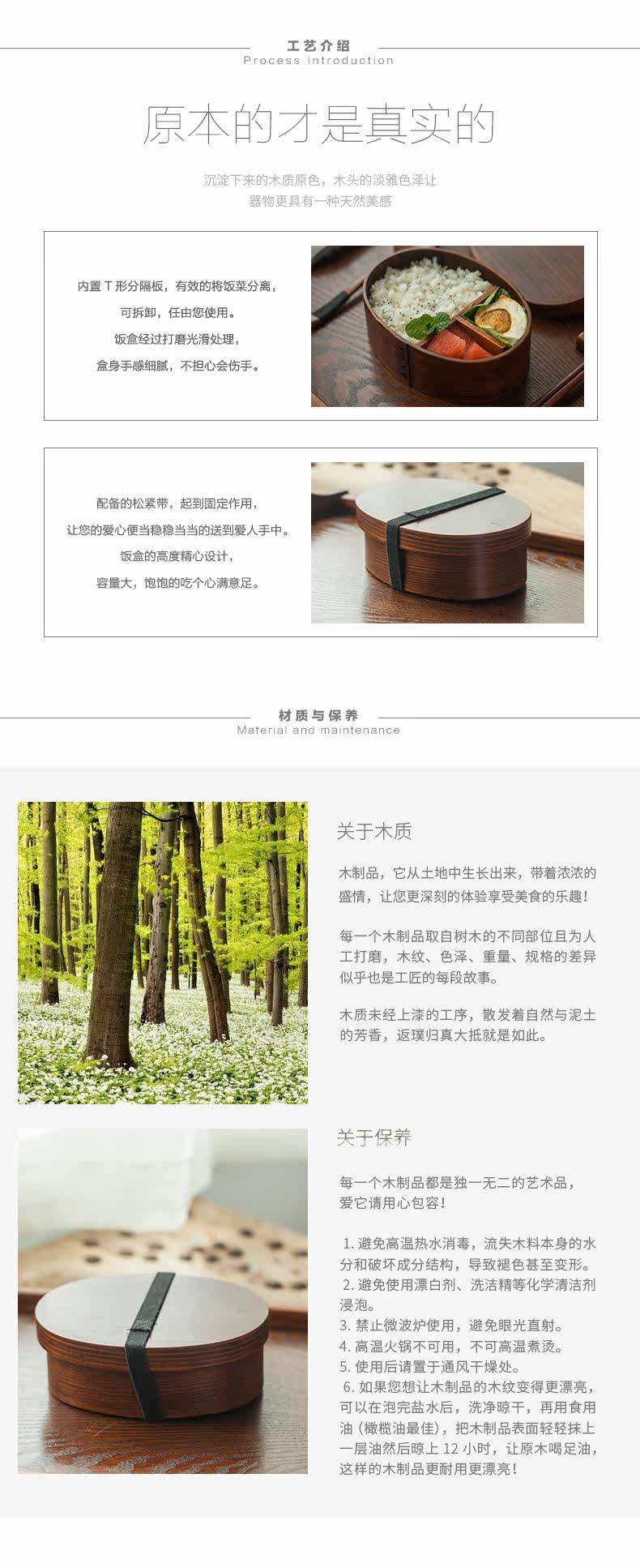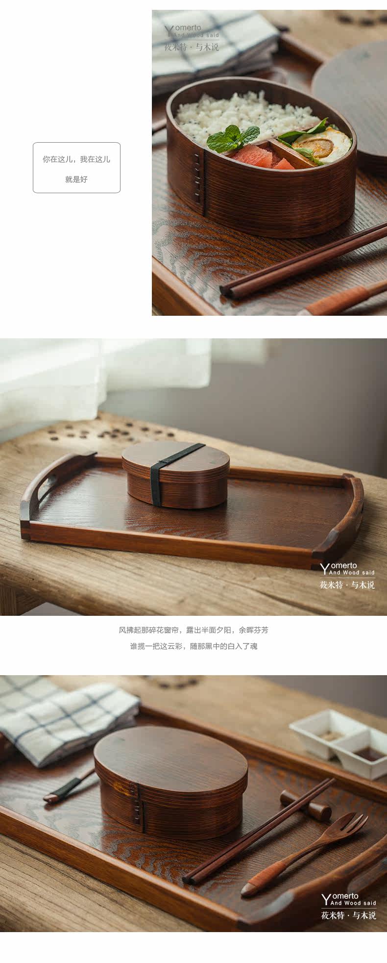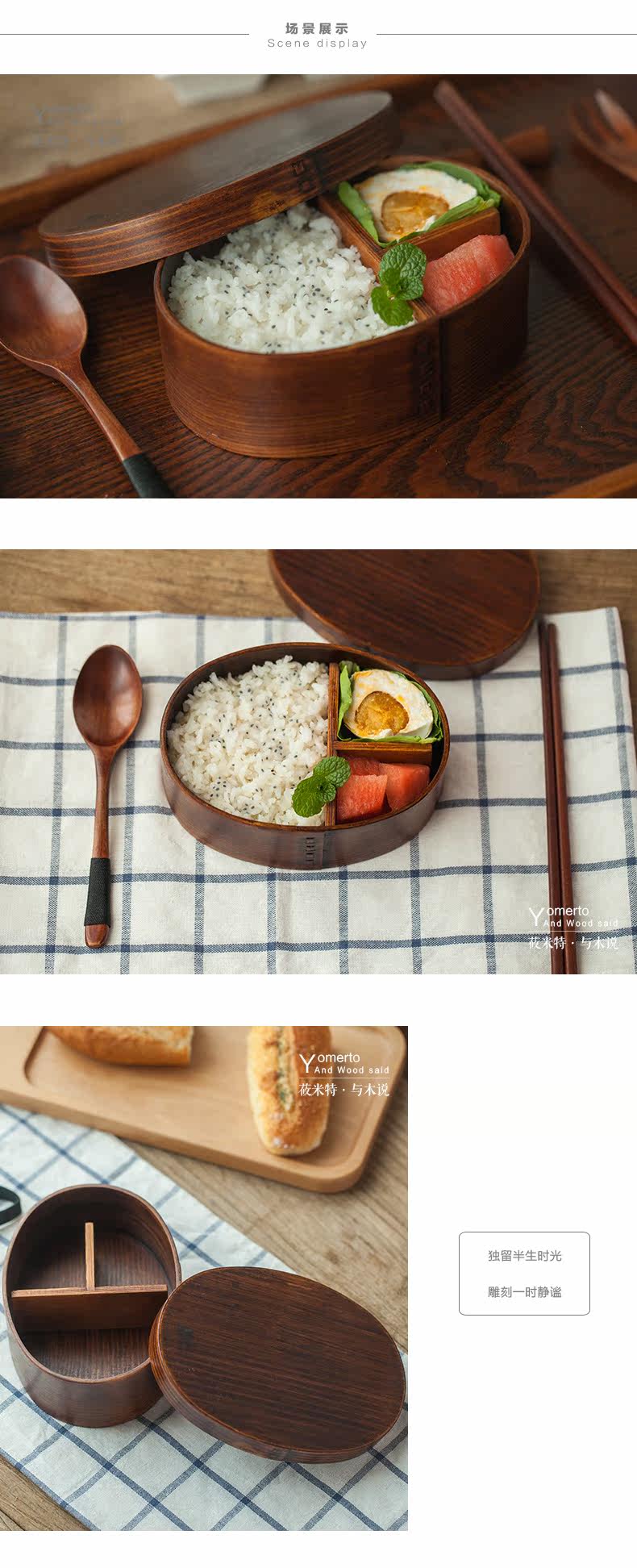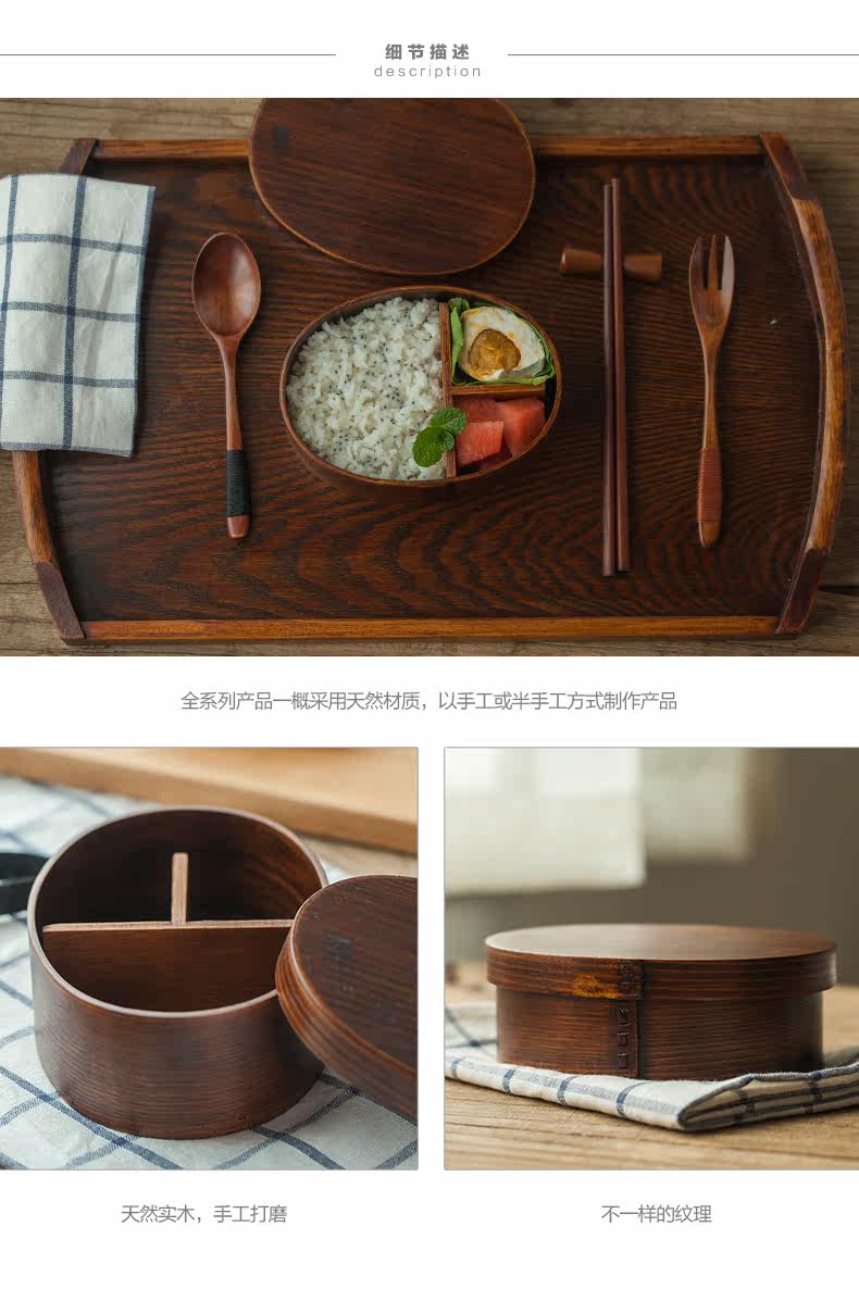 ?日式zakka木质便当盒饭盒隔层 简餐盒 健康环保创意家居生活用品