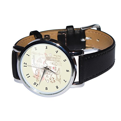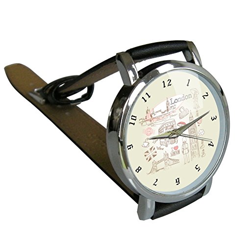 -. Title : London Themed Watch. A Great Wristwatch Showing Images of London. Genuine Leather Strap