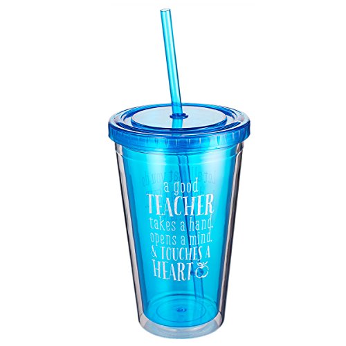 Honor a teacher with a gift of praise. The Blue Blessings to the Teacher Tumbler carries an expression that is poetry to their ears. The back displays a line of inspiring Scripture form 1 Corinthians 16:14. The double-wall insulated plastic tumbler has a threaded lip to prevent leaking and its own straw, complete with a stop. Find more Blessings to a Teacher Collection items in Kitchen & Home and Fashion Accessories.Feature