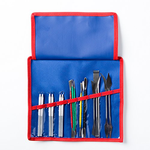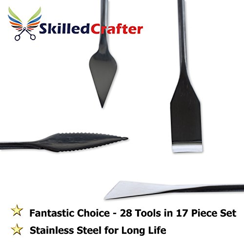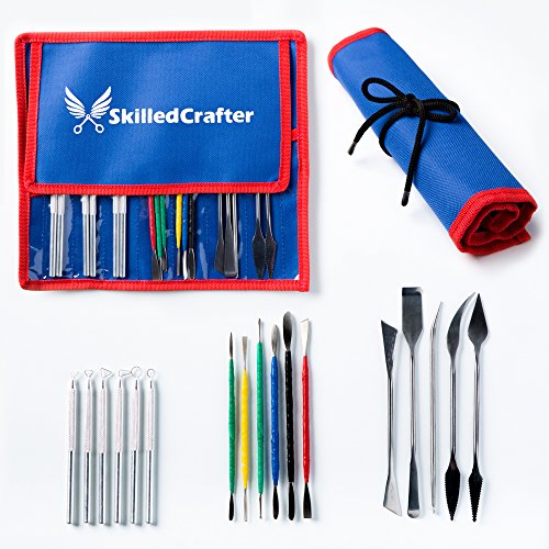 Skilled Crafter Pottery Tools with Case. 28 Stainless Steel & Aluminum Clay Modeling & Sculpting Tools in 17 Piece Set. Professional Quality. + FREE Needle Tool