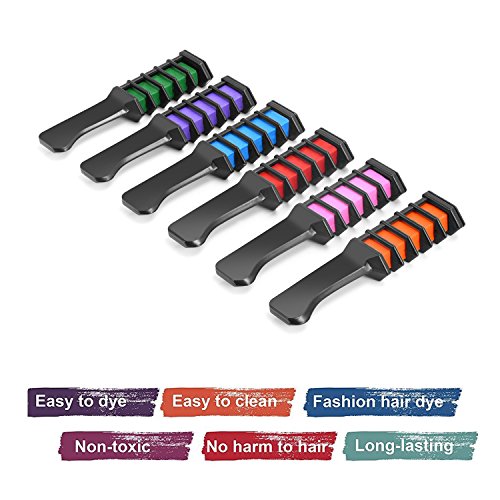 Temporary Hair Chalk Comb, Ociga Hair Color Comb with Non-Toxic and Safe for Kids, Great for Festivals Party Cosplay DIY (6-colors)