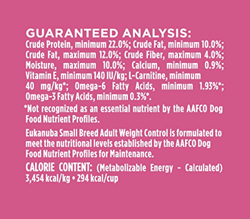 Contains one (1) 5-lb. bag of EUKANUBA Adult Small Breed Weight Control Dog Food (Packaging May Vary)