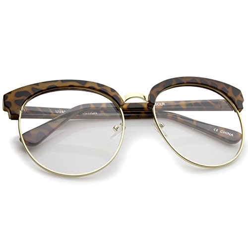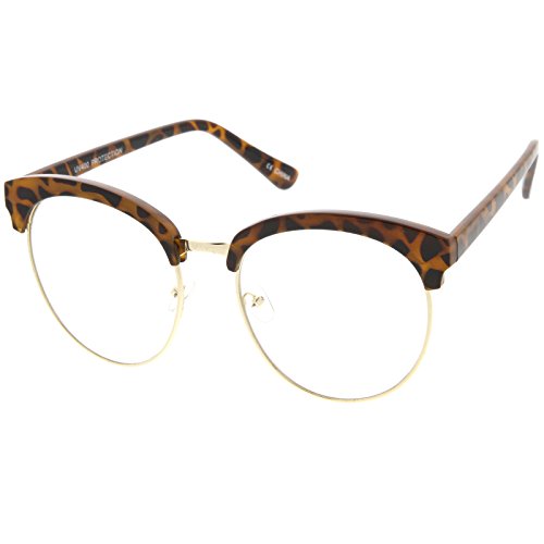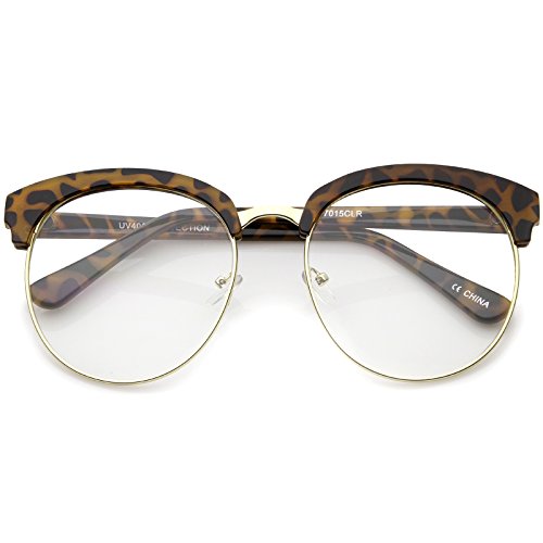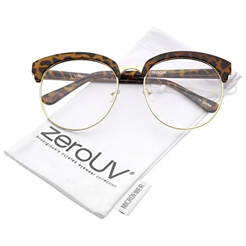 zeroUV - Oversized Flat Clear Lens Half Frame Semi-Rimless Round Glasses 58mm
