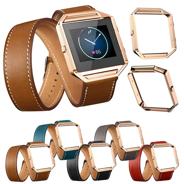 상품 내용 시계 밴드 23 미리메터 럭셔리 긴 가죽 더블 링 시계 밴드 손목 스트랩 + 금속 프레임 핏 비트 블레이즈 스마트 시계 2016 새로운 특징: