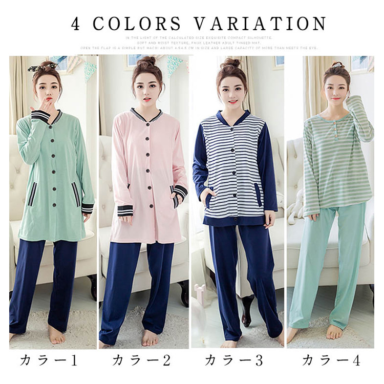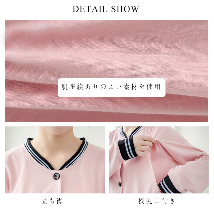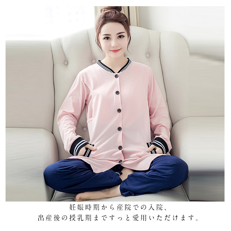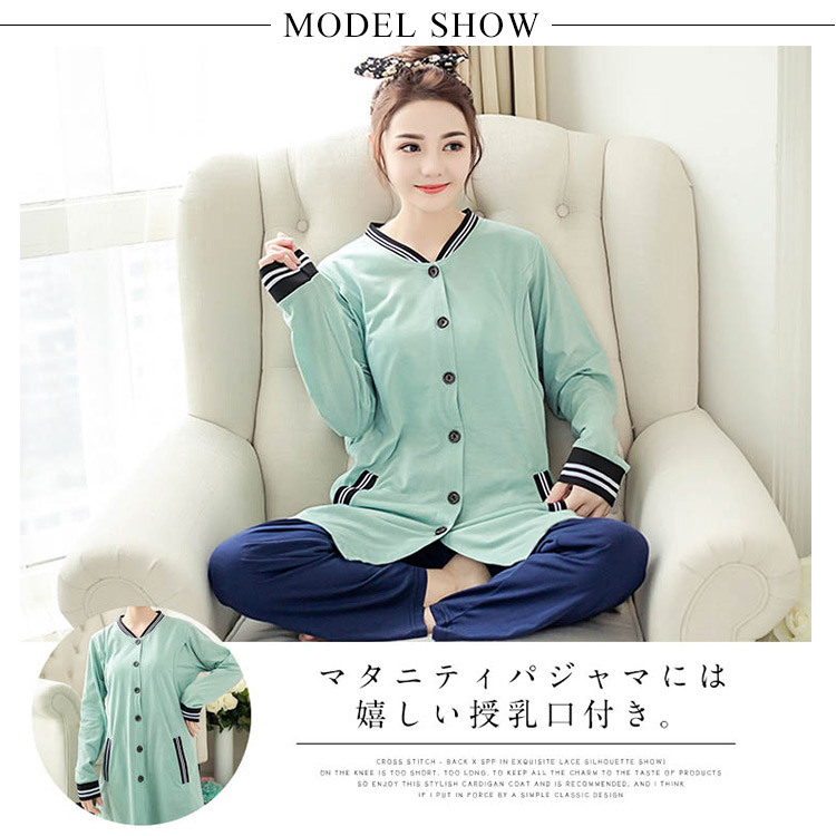 | 上品で落ち着いたデザインのマタニティウェアです。マタニティパジャマには嬉しい授乳口付き。妊娠時期から産院での入院、出産後の授乳期まですっと愛用いただけます。通気性が良く、汗をよく吸い、肌触りが良いので快適に着用することが出来ます。 | |