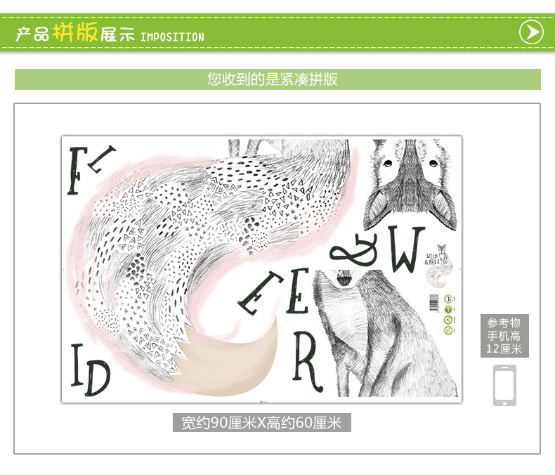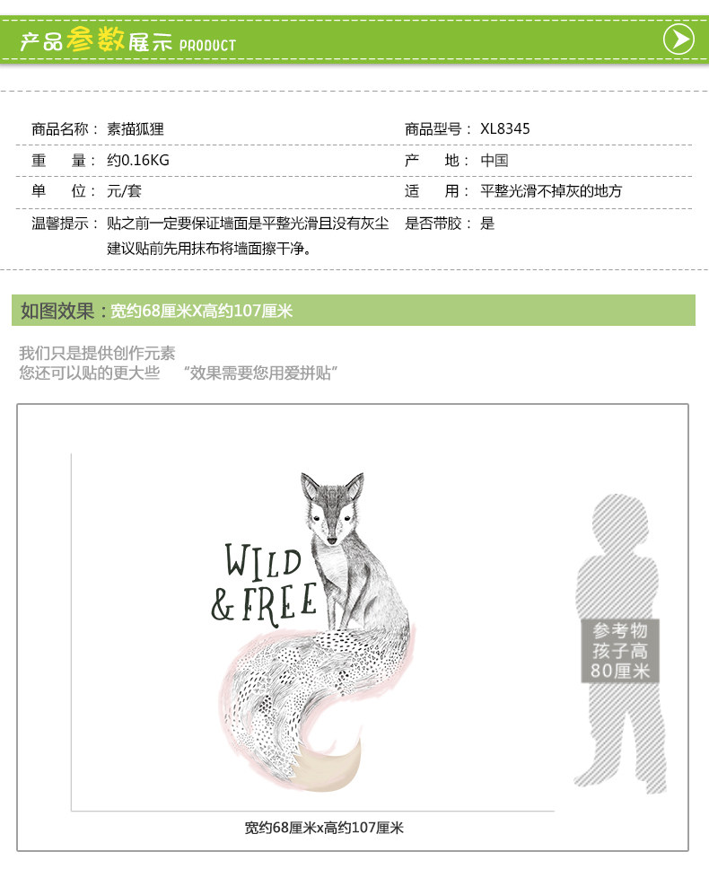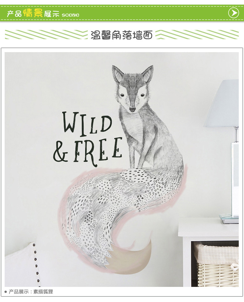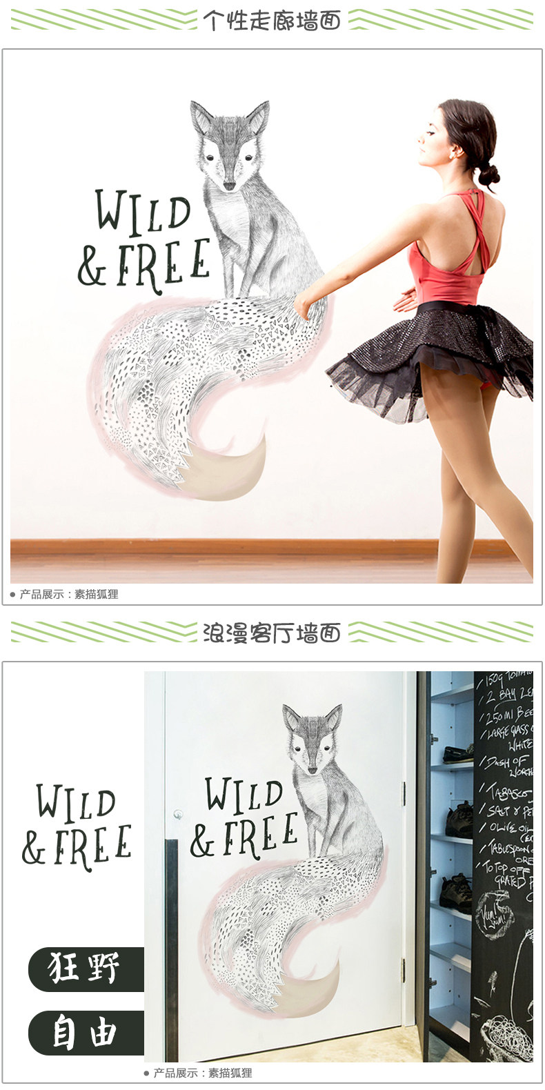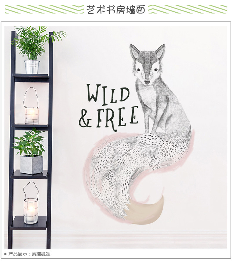 素描狐狸动物墙贴墙纸贴画自粘创意餐厅客厅卧室墙壁装饰墙画