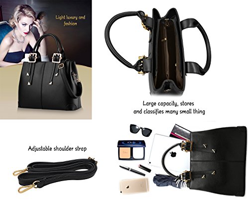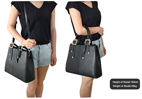 -. Feature : Material: High quality PU leather / Size: 12.6"L*10"H*4.7"W(32cm*25cm*12cm); Handle length: 14cm/5.5". / Inner Structure: One main compartment with one pocket for phone, one pocket for certificate, one zipper compartment and one invisible pocket inside, which organize your personal things like magazine, cosmetics, phone, umbrella and iPad. / Strap: Double handle with a removable and adjustable long shoulder strap. Convenient & Comfortable to wear in 3 ways: Tote, Shoulder and Cross Body. / Fine workmanship, fashion design and durable quality makes it a good choice as a gift for your family, lovers and friends.