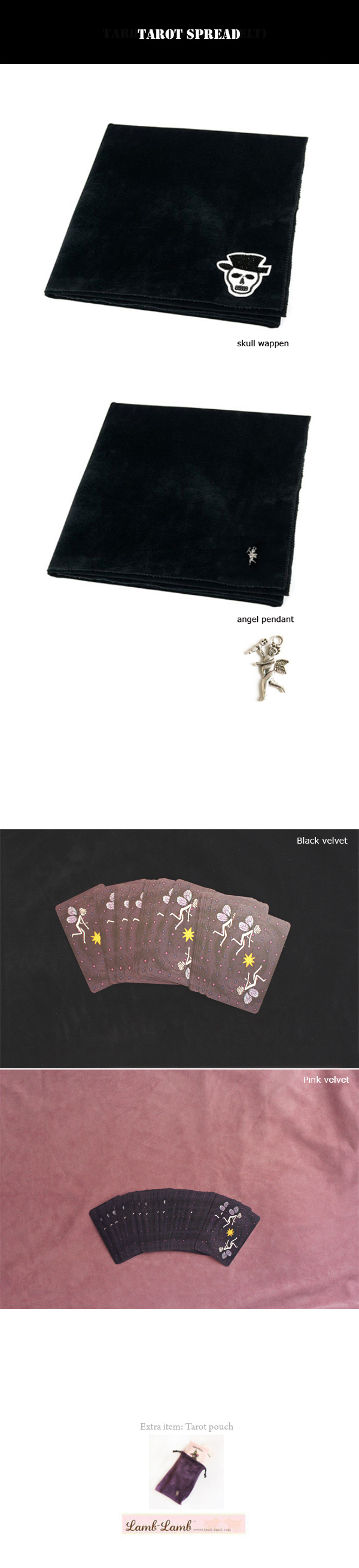 *Feature : tarot spread 1pcs*Size : 68x72cm, 68x144cm*Material : fake velvet fabric*Color : black, pink *Design : skull wappen, angel pendant