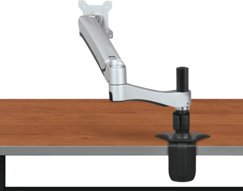 -. Binding : Kitchen -. Brand : Balt -. Color : Silver -. EAN : 0717641666433 -. Feature : SP.R.Ing-loaded joints ensure the arms stay in place, yet are easily repositionable / One dual-jointed arm (included) feature 95° of tilt adjustment / Monitor mount joint features 180° of swivel, 110° of tilt adjustment, a full 360° of rotation adjustment, landscape or portrait orientation / Arm holds a monitor up to 24" and 22 lbs. and is VESA compatible mounting in 75mm x 75mm or 100mm x 100mm mounting patterns / Arm locks securely onto your desktop with a clamp mechanism that adjusts to accommodate desktops from 1.2" to 115.16" thick -. Label : MooreCo inc DBA Balt and Bestrite -. Manufacturer : MooreCo inc DBA Balt and Bestrite -. Model : 66643 -. MPN : 66643 -. NumberOfItems : 1 -. PackageQuantity : 1 -. PartNumber : 66643 -. ProductGroup : Furniture -. ProductTypeName : HOME_FURNITURE_AND_DECOR -. Publisher : MooreCo inc DBA Balt and Bestrite -. Size : 24" - 29.9" -. Studio : MooreCo inc DBA Balt and Bestrite -. Title : Balt HG Desktop Monitor Mount -. UPC : 717641666433 -. Warranty : 1 yr limited.