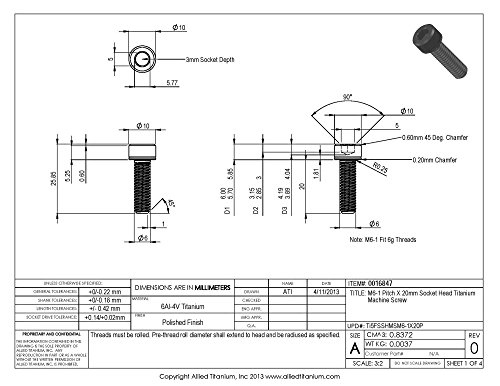 Allied Titanium 0016847, (Pack of 10) M6-1 Pitch X 20mm Metric Titanium Socket Head Machine Screw, Grade 5 (Ti-6Al-4V)