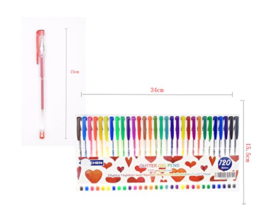 ASSORTED COLORS:120 unique colors gel pen set,lear and vibrant colors including glitter,glitter neon,pastel,neon,metallic,classic,swirl,heye.Multiple colors become the garantee of your perfect works!