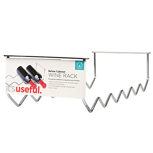 -. Brand : It's Useful -. Feature : SPACING SAVING: Store and organize your wine bottles below your cabinets with this convenient wine rack. / HOLDS 5 BOTTLES: Holds up to five standard size bottles. / EASY INSTALLATION: Comes with easy to mount hardware. / SLEEK DESIGN: Made with 6 mm wire gauge with bright chrome finish. / DIMENSIONS: Measurements are 56 x 20.5 x 12.8 cm. -. Label : It's Useful -. Manufacturer : It's Useful -. Model : UH/BH184 -. MPN : UH/BH184 -. PartNumber : UH/BH184 -. ProductGroup : Kitchen -. ProductTypeName : KITCHEN_TOOLS -. Publisher : It's Useful -. Studio : It's Useful -. Title : It's Useful Chrome Iron Wire Wine Bottle Kitchen Rack - Below Cabinet, Easy to Mount