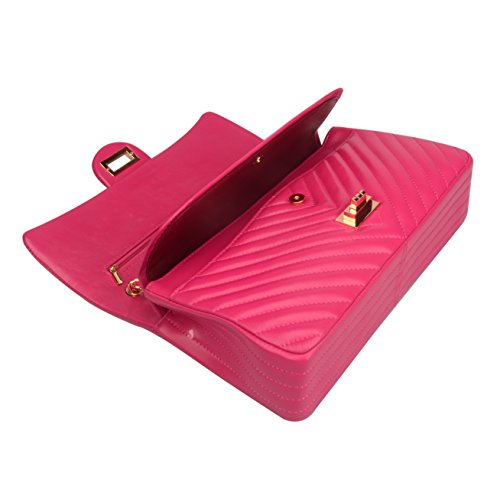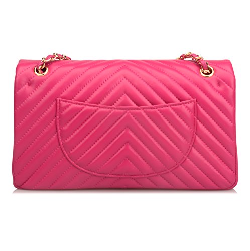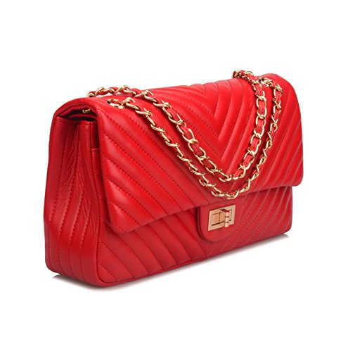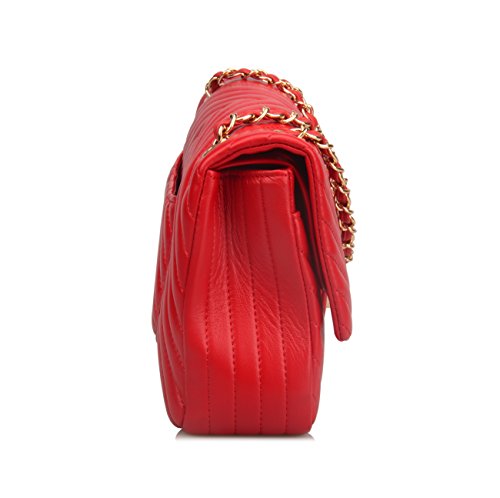 -. Feature : Sheepskin / Synthetic lining / Two pockets in the interior, chain shoulder strap or crossbody strap / Medium: 9.5''(L) X 3.5'' (W) X 6.5'' (H) . Large: 11.5'' (L) X 4''(W) X 7.5(H) / Please note the zipper in inner flap is stitched, it's not a functional pocket