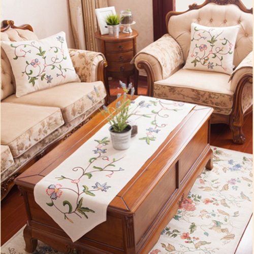 - Title : SewForever Floral Embroidered Linen Cotton Table Runner, 63.0 x 15.7inches