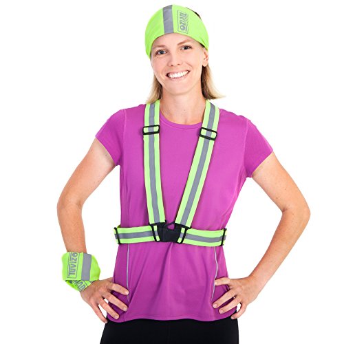 This bundle contains an elastic reflective vest and two high vis polyester bandanas with reflective details. The vest is the same model as our successful Tuvizo Reflective Vest with the addition of an ID label. The bandanas can be worn as headbands, sweatbands, hats, neck warmers or in any way you choose.
