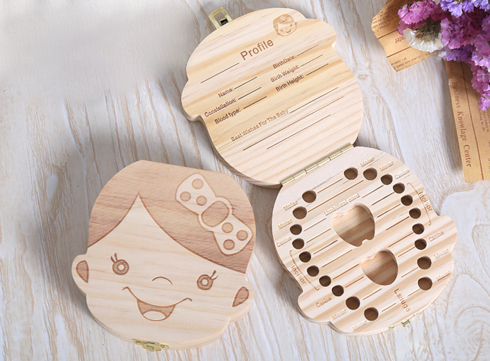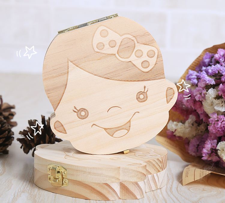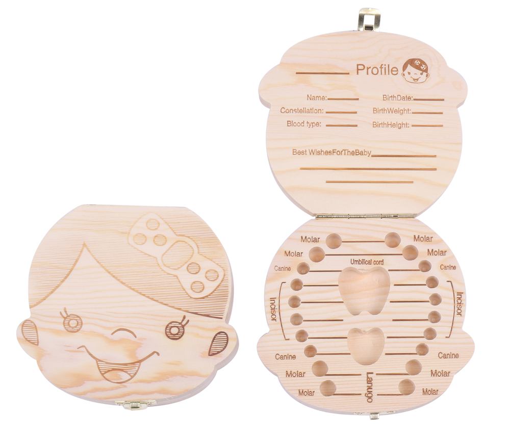 かわいい ガール フェイス柄 木製 乳歯 ケース 出産 お祝い お子様 の成長 記録 保存 ナチュラルウッド mmk-k46【1~2日発送】