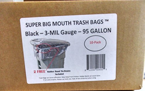95 Gallon Super Big Mouth Trash Bags 10-Pack Plus 2 Free Rubber Tie Down Band