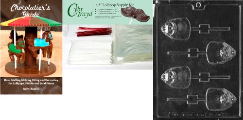 Cybrtrayd Long Bearded Santa Lolly Chocolate Mold with Chocolatier's Bundle of 25 Lollipop Sticks, 25 Cello Bags, 25 Red Twist Ties and Chocolatier's Guide
